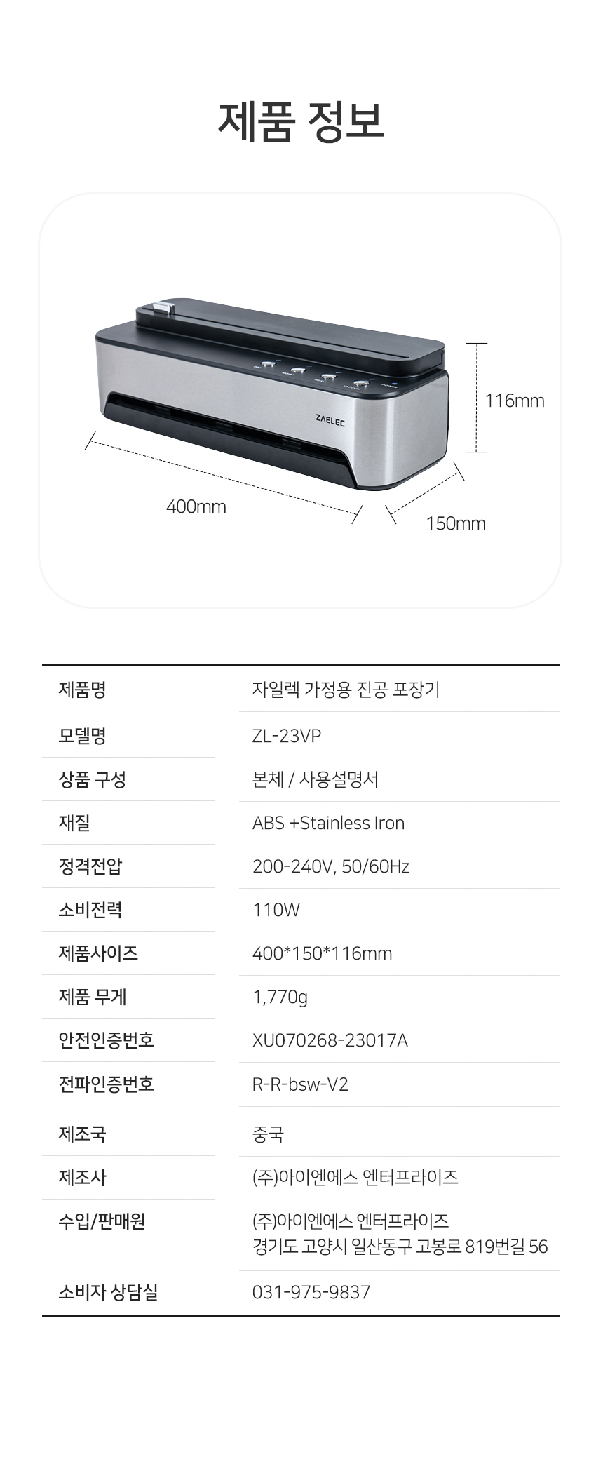[자일렉] 가정용 진공포장기 음식 진공 압축기