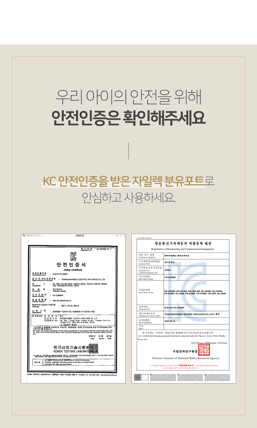 KC 인증정보 (「전기용품 및 생활용품 안전관리법」에 따른 안전인증ㆍ안전확인ㆍ공급자적합성확인대상제품 및 「전파법」에 따른 적합인증ㆍ적합등록 대상 기자재에 한함)