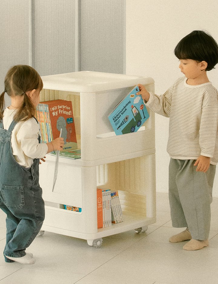 [루나스토리] 유아 아기 2단 회전책장 거실 책꽂이 교구장