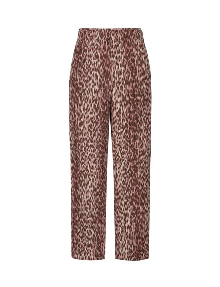 [몽플리쎄] 여성 레오파드 와이드핏 플리츠 롱 팬츠 (핑크)
