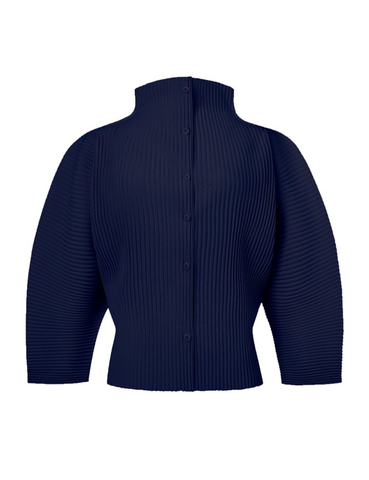 [몽플리쎄] 여자 꽁띠 하프넥 드랍숄더 플리츠 가디건 (네이비)
