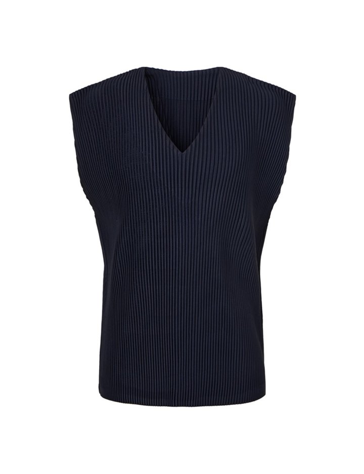 [몽플리쎄] 공용 V넥 기본 플리츠 베스트 (네이비)