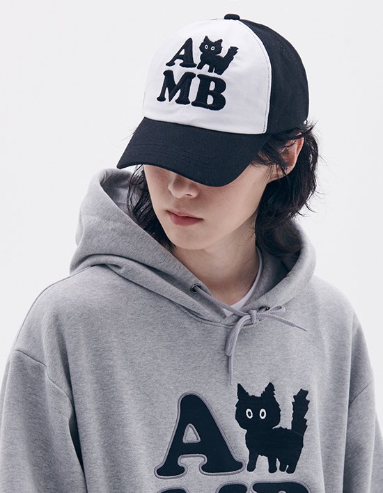 AMB 빅로고와 함께 검정 고양이가 돋보이는 디자인의 편하게 쓰기 좋은 오픈 백 볼캡
