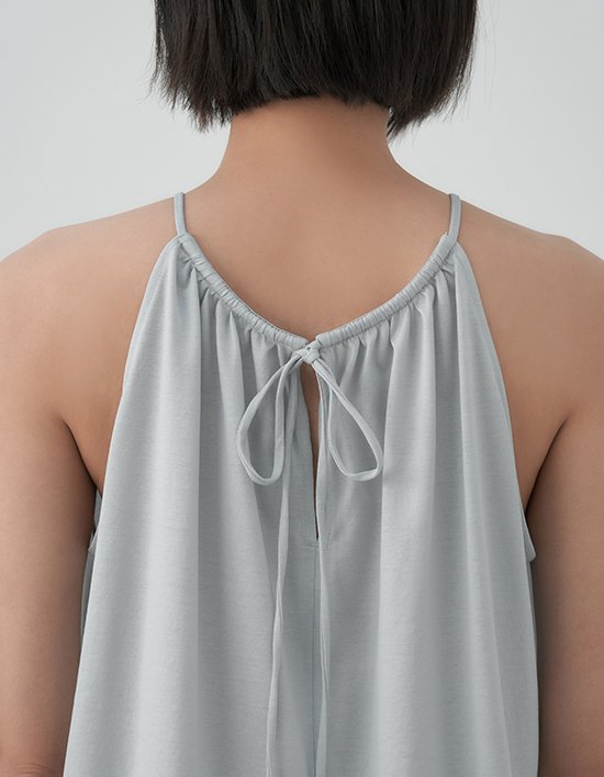 [와이잭] W_홀터넥 셔링 슬리브리스 져지 블라우스 (155gsm) 2종 (택1)