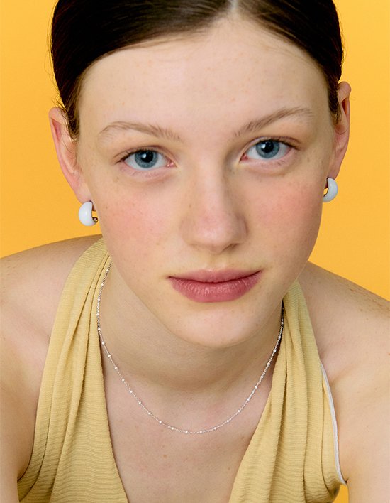 초승달을 연상시키는 볼륨감 있는 쉐입과 비비드한 컬러감으로 화사한 분위기를 더해주는 귀걸이