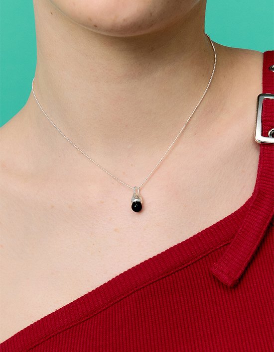 925실버 체인에 포인트 원석 펜던트가 달린 자연스러운 무드의 목걸이