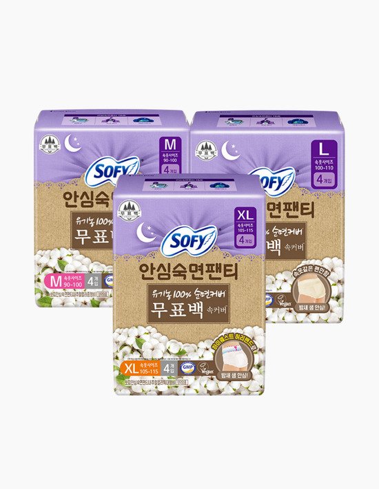 [쏘피] 안심숙면팬티 무표백 속커버 생리대 3종 (택1)