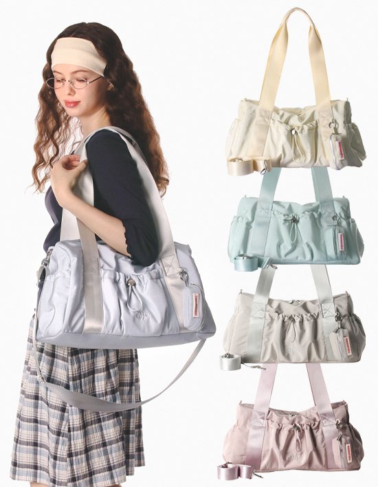 [마스마룰즈] (파우치세트) 글로시 숄더 더플 백 5컬러 (택 1)
