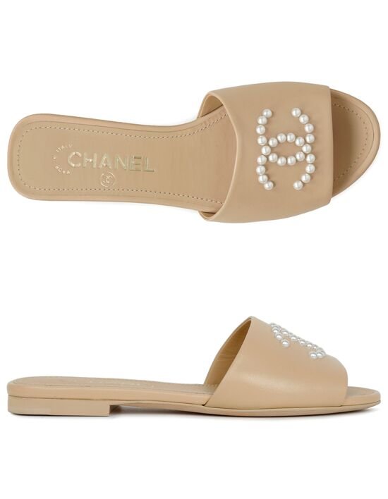 [샤넬] 베이지 펄 CC 샌들 슬리퍼 G38360