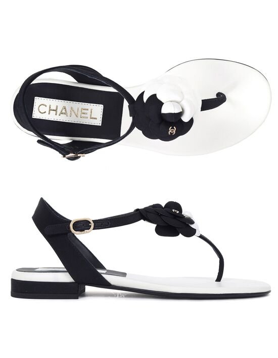 [샤넬] 화이트 블랙 까멜리아 플립플랍 샌들 G39057