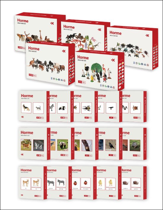 [호르메] 몬테소리 동물피규어 5종 75pcs 풀세트 + 카드 15종 375pcs (단품)