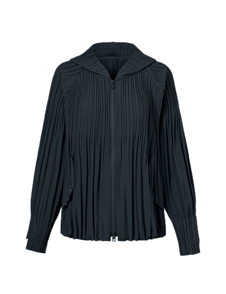 [몽플리쎄] 여성 퍼프 볼륨 플리츠 후드 점퍼 (블랙)
