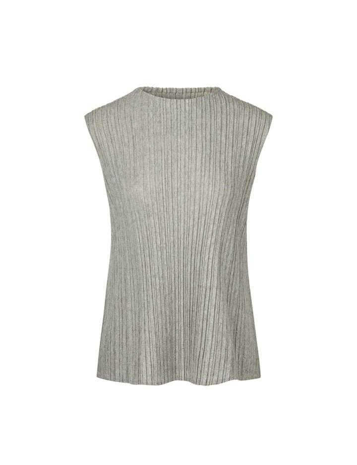 [몽플리쎄] 여성 멜란지 니팅 플리츠 민소매 탑 (그레이)