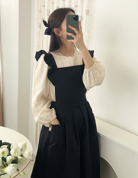 생활방수 소재로 제작된 어깨 프릴형 원피스 앞치마