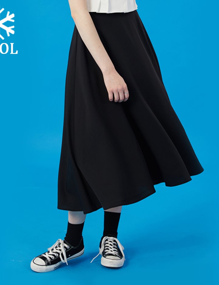 [콜릿] WOMEN 쿨링 냉장고 세미 플레어 미디 롱치마 (블랙) 롱스커트 ver.