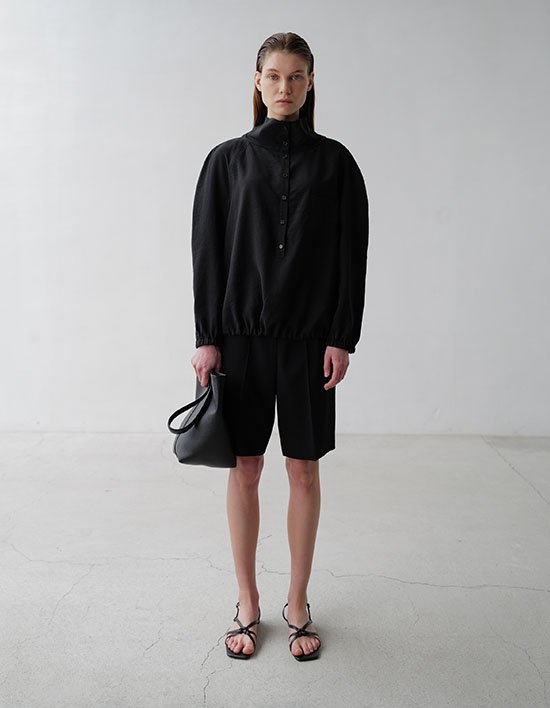 [로웨]비스코스 린넨 드로스트링 볼륨 블라우스_블랙