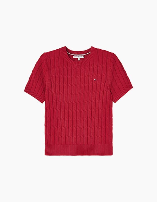 클래식한 무드의 케이블 조직이 돋보이는 케이블 크루넥 반팔 스웨터입니다.<br>100% 면 소재로 부드럽고 쾌적한 착용감을 제공하며, 여름철에