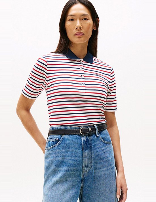 Fit: 레귤러 핏<br>클래식한 4버튼 폴로 디자인에 멀티 RWB 컬러 스트라이프가 세련된 포인트를 더한 폴로셔츠입니다.<br>