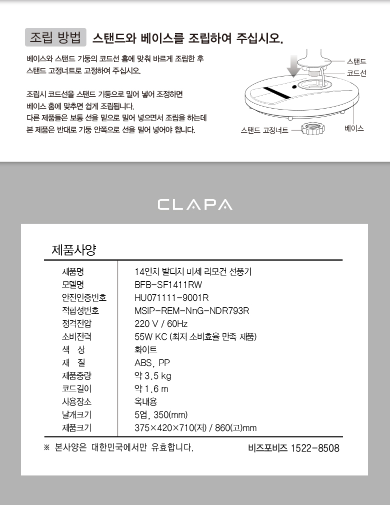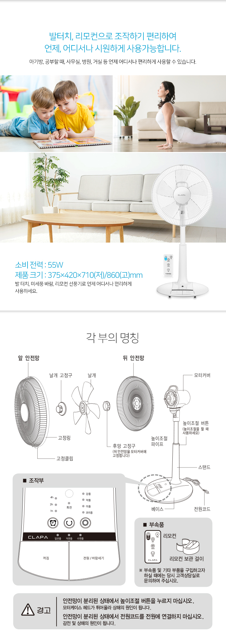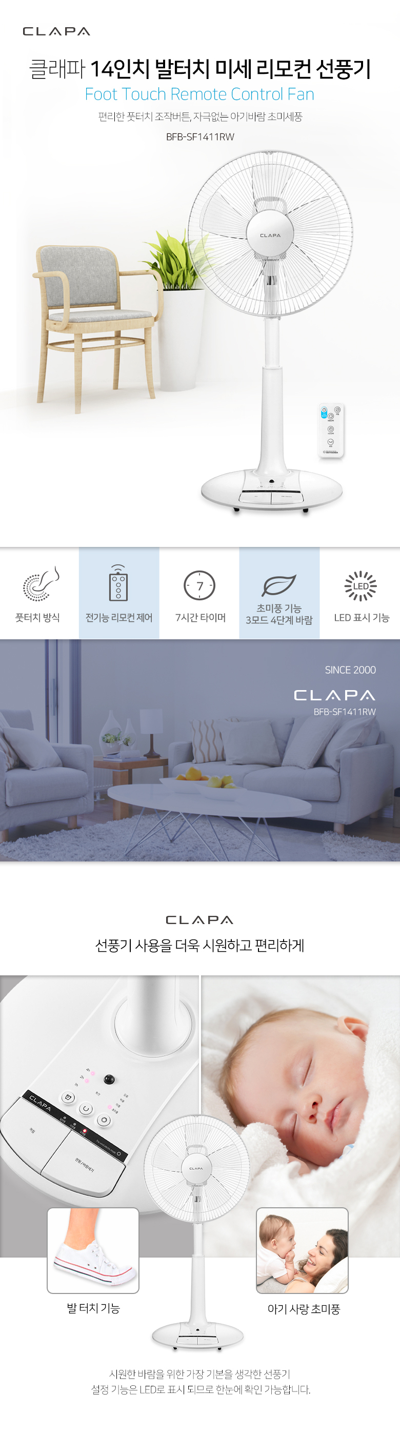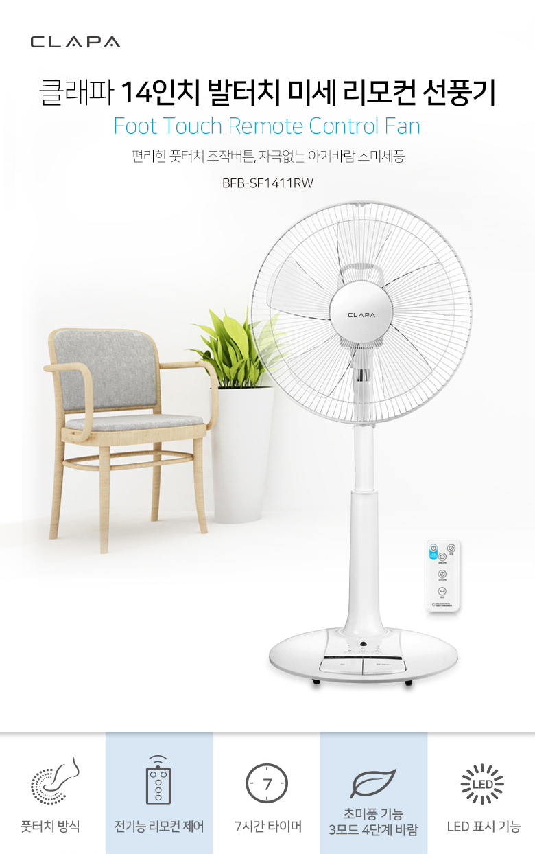 [클래파] 36cm 발터치 초미풍 리모컨 선풍기
