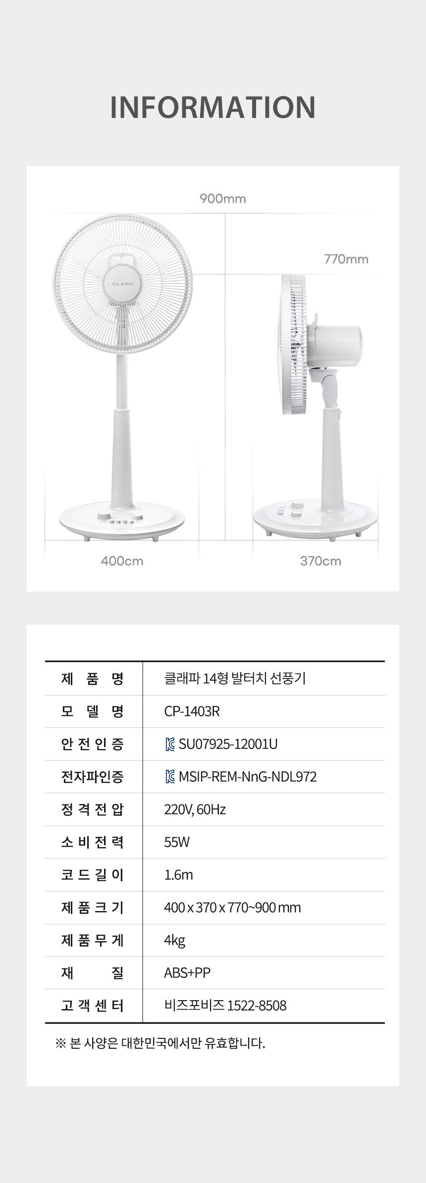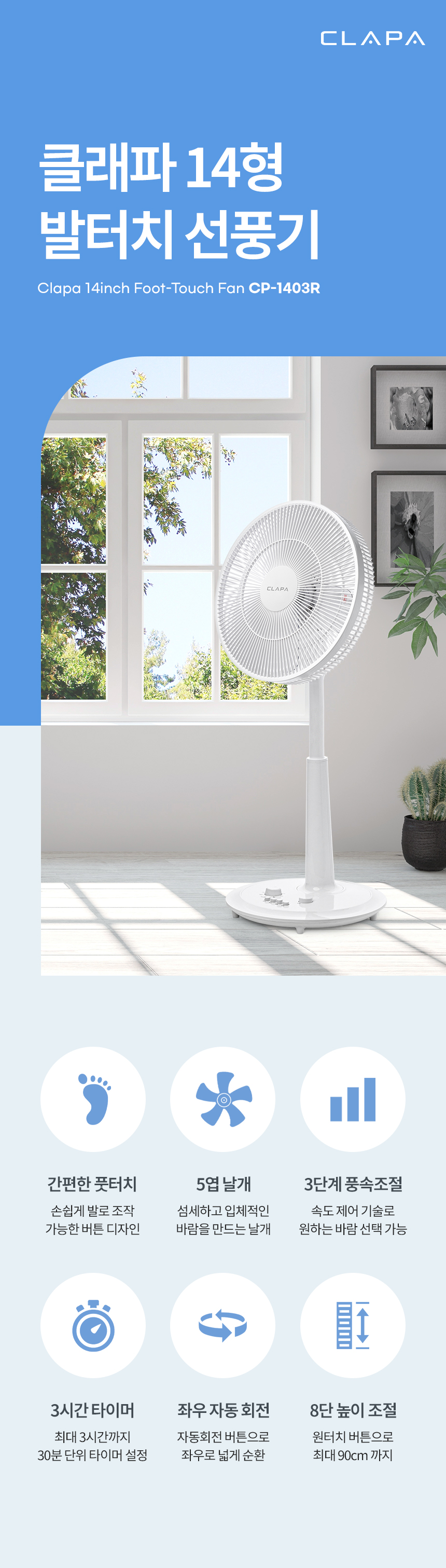 [클래파] 35cm 발터치 저소음 스탠드 선풍기