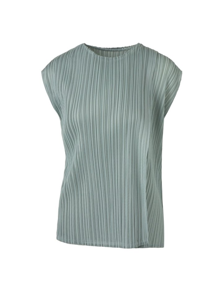 [몽플리쎄] 여성 덧장 레이어드 민소매 플리츠 탑 (라이트 블루)