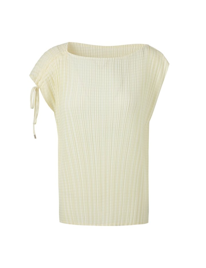 [몽플리쎄] 여성 스트링 민소매 자카드 플리츠 블라우스 (아이보리)