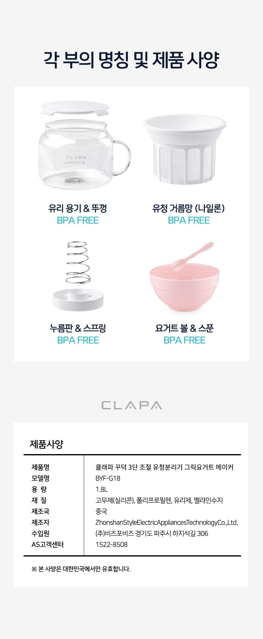 [클래파] 1.8L 대용량 유청분리기 그릭요거트 메이커