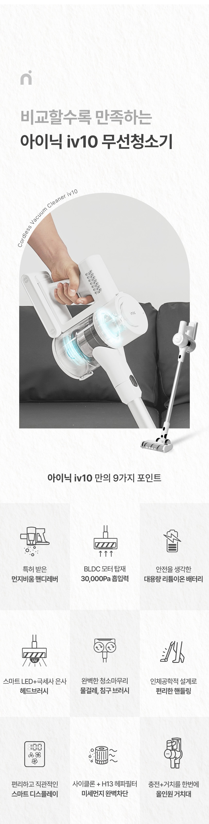 [아이닉] 무선 청소기 iv10 (iv10 화이트 본품)