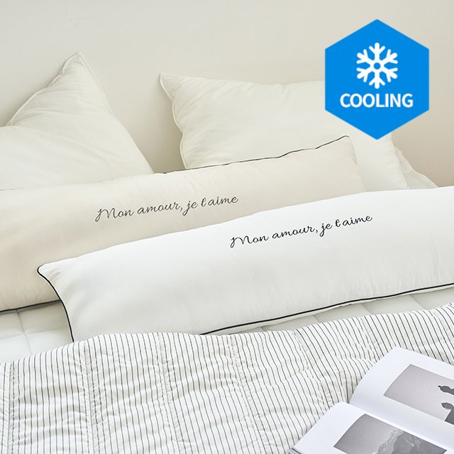 [데코뷰] 레터링 자수 냉감 바디필로우 롱쿠션(솜포함)