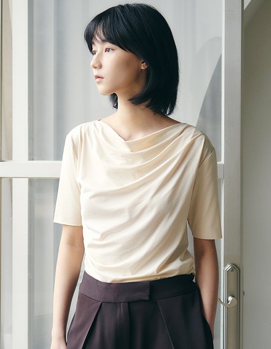 [와이잭] W_모어텐션 드레이프 셔링 반소매 져지 블라우스(120gsm) 4종 (택1)