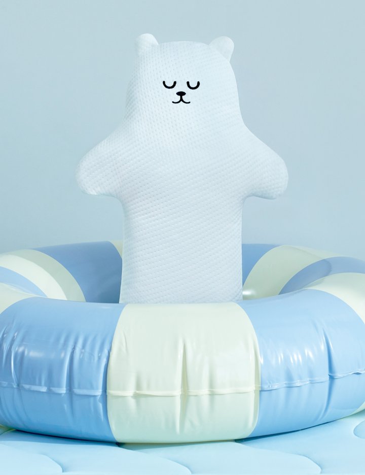 껴안을수록 시원한 바디필로우 쿨쿨곰. 꼭 껴안거나, 다리를 올리거나, 온몸을 기대도 좋습니다. 부드러운 촉감의 겉 커버는 우주 비행사 의류에 사용되는 TRC(온도반응형캡슐) 소재로 남다른 시원함을 전해줍니다. 고밀도 메모리폼을 갈아넣어 쫀득하면서도 탄탄한 느낌이들죠.