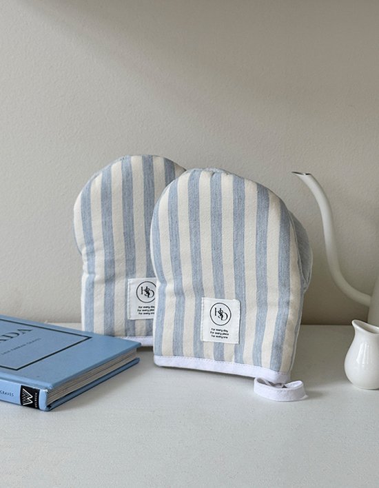 부드러운 색감의 스트라이프 패턴으로 제작된 주방 장갑