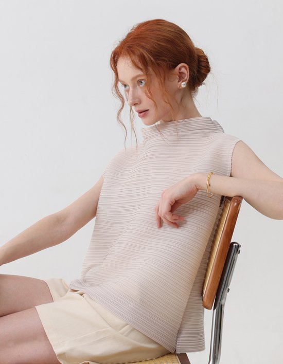 [플리츠무드] 쇼아 하프넥 민소매 플리츠 블라우스 2colors (택1)