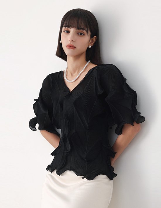 [플리츠무드] 커브스 플리츠 블라우스 2colors (택1)