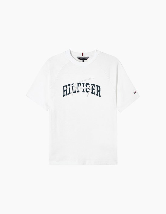 감각적인 그래픽과 클래식한 디테일이 조화를 이루는 믹스 그래픽 티셔츠입니다.앞면에는 TOMMY HILFIGER 로고 자수와 프린팅을 믹