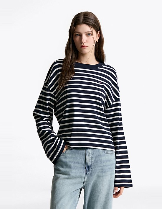 Fit: 릴랙스 핏감각적인 스트라이프 패턴이 돋보이는 모던한 롱 슬리브입니다.여유 있는 릴랙스 핏으로 편안한 실루엣을 연출