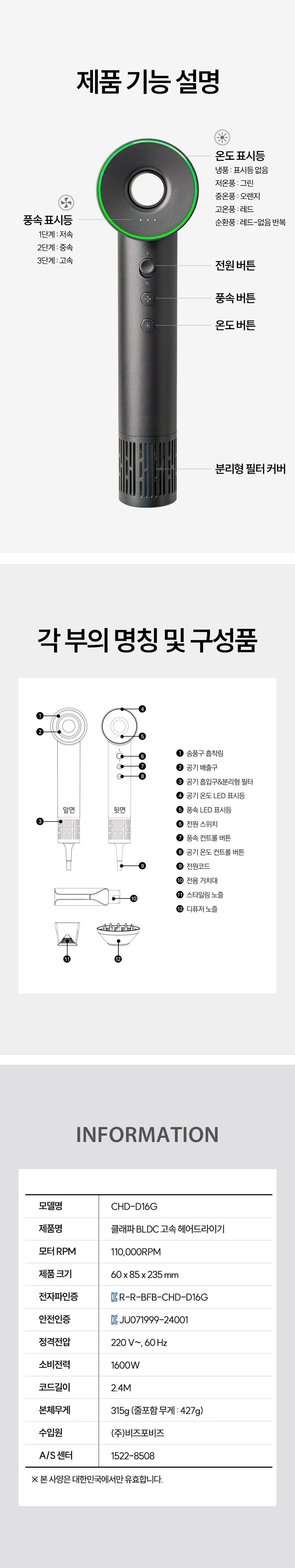클래파 드라이기 CHD-D16G