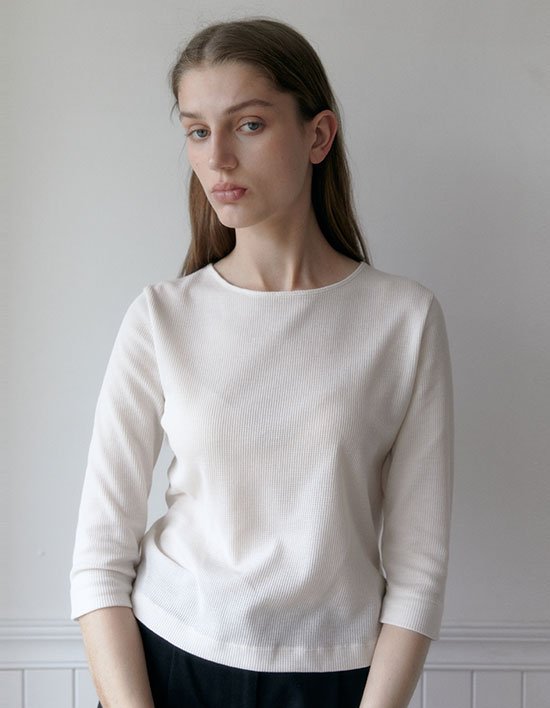 [38컴온커먼] 와플 쓰리 쿼터 슬리브 티셔츠 (아이보리)