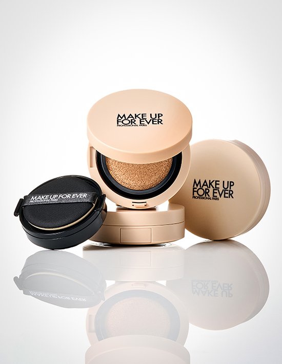 퍼프를 용하여 볼 > 턱 > 이마 순으로 꾹 눌러주면서 쿠션 내용물을 찍어줍니다. 퍼프로 안쪽에서 바깥 방향으로 두드려 펴 바르면서 밀착시켜줍니다. 콧망울이나 눈가 주변은 퍼프의 뾰족한 끝 부분으로 쓸어주어 잔주름과 모공에 끼임 없이 매끈한 피부 결을 연출해줍니다. 쿠션이 거의 묻지 않은 퍼프 끝 부분으로 얼굴 외곽 부분을 가볍게 두드려 경계를 자연스럽게 연결해줍니다.