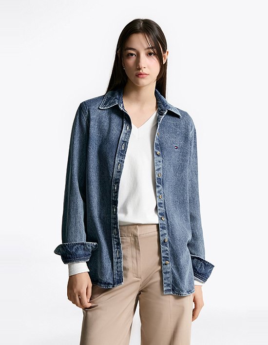 Fit 레귤러 핏부드러운 레이온 100 소재로 제작된 레귤러 핏 데님 셔츠입니다.깔끔한 버튼 클로징과 커프스 버튼 디테