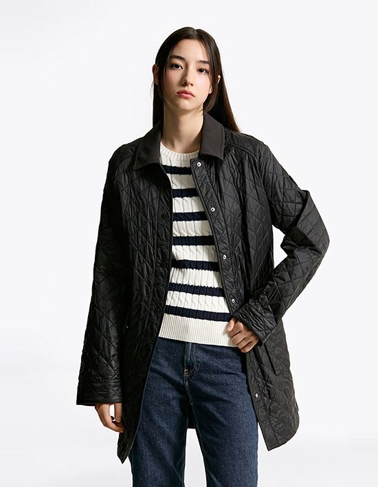 Fit 레귤러 핏미디 기장과 싱글 칼라는 클래식한 매력을 그대로 살리면서도 다양한 스타일에 잘 어울리며, 다이아몬드 퀼팅 디테일로