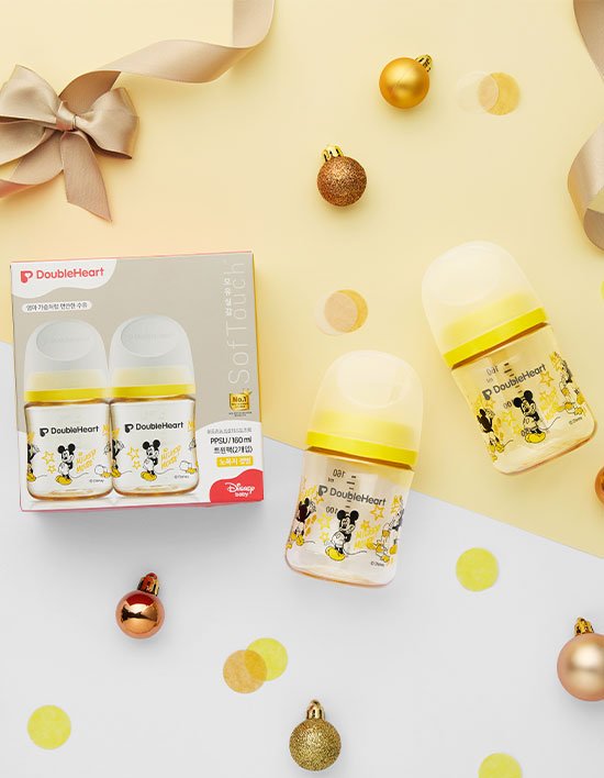 [더블하트] 3세대 디즈니젖병 160ml 미키 클래식 트윈팩(젖병2개/노꼭지)