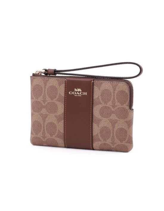 [코치] 미니파우치 가죽 카드지갑 시그니처 지퍼 손목지갑 탄 브라운 CW854IMXHE