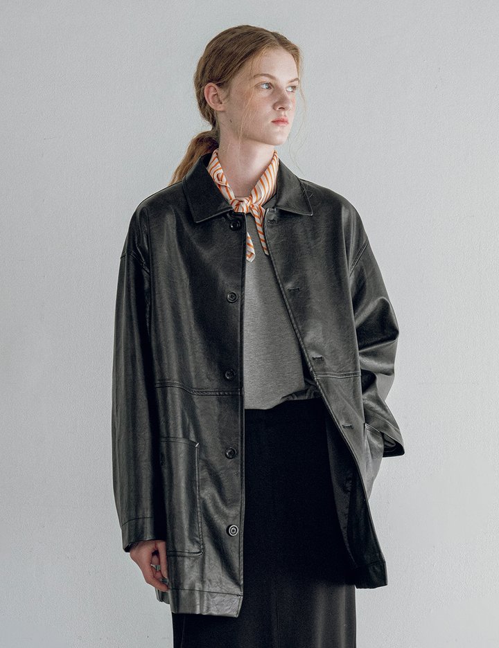 [반원 아틀리에] 레더 하프 코트(O3752)