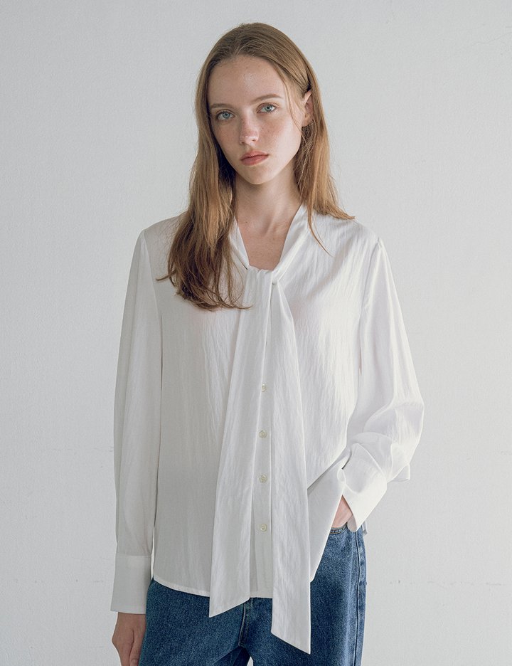 [반원 아틀리에] 미니멀 타이 블라우스_화이트(A3544)