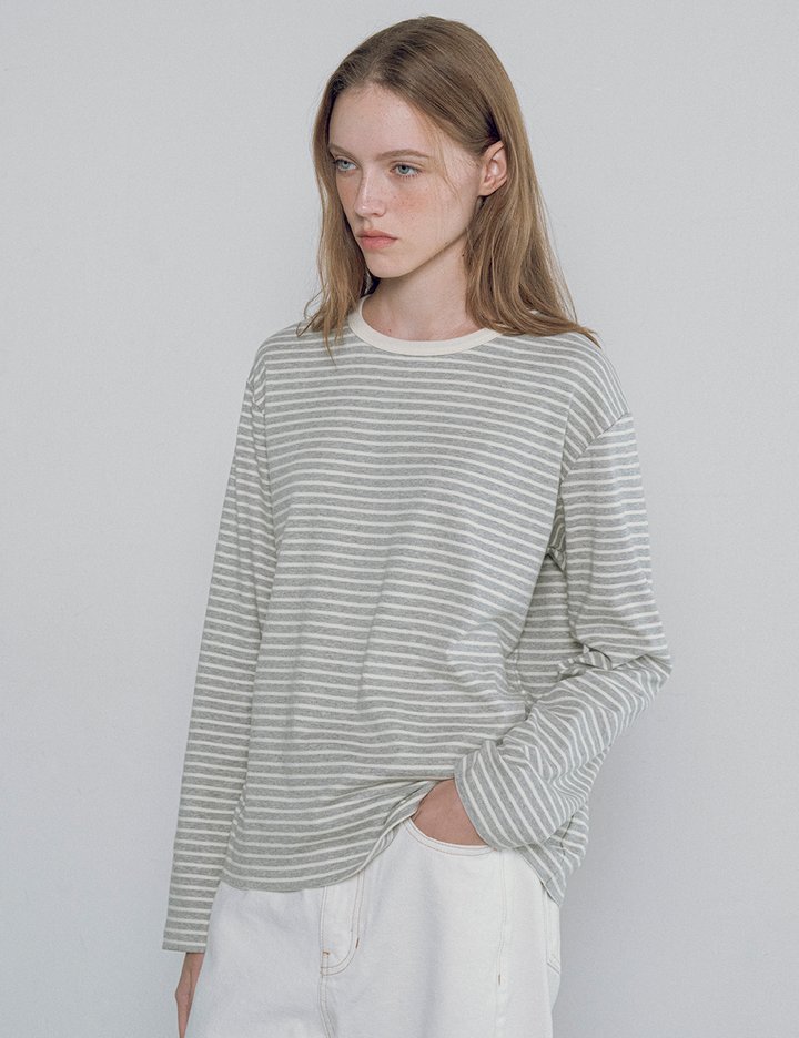[반원 아틀리에] 스트라이프 라운드 티셔츠_멜란지 그레이(A3546)