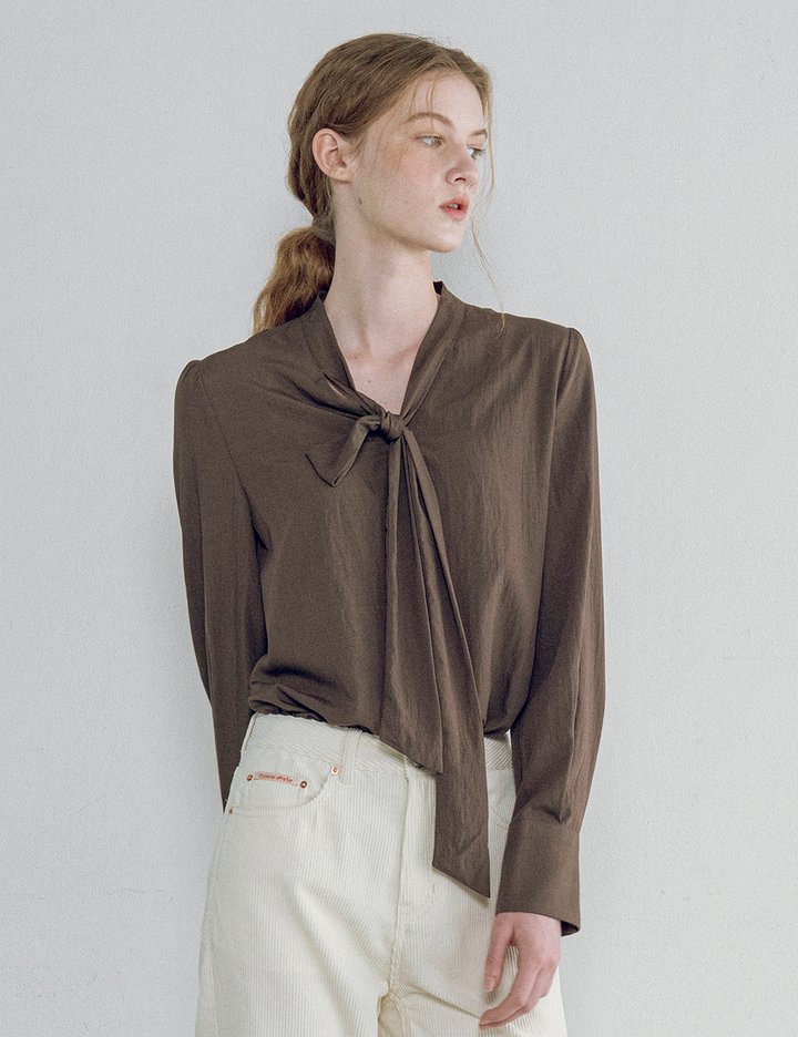 [반원 아틀리에] 미니멀 타이 블라우스_브라운(A3544)
