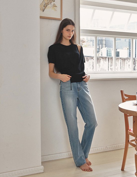 데일리하게 입기 좋은 크롭 기장감의 데님 팬츠