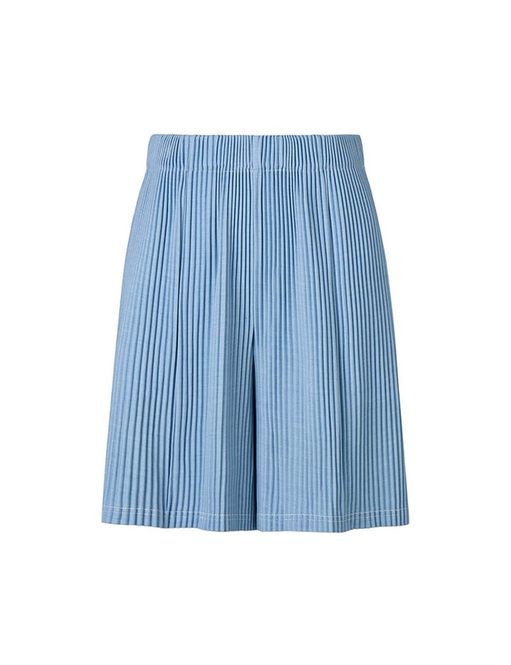[몽플리쎄] 스티치 포인트 데님 플리츠 쇼츠 (라이트 블루)