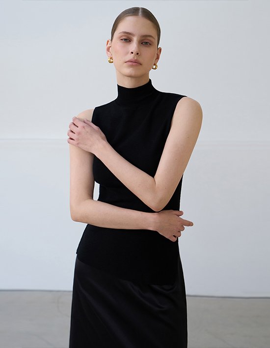 [르쏭드비] 파인 울 슬리브리스 니트 (블랙) 2종 (택1)